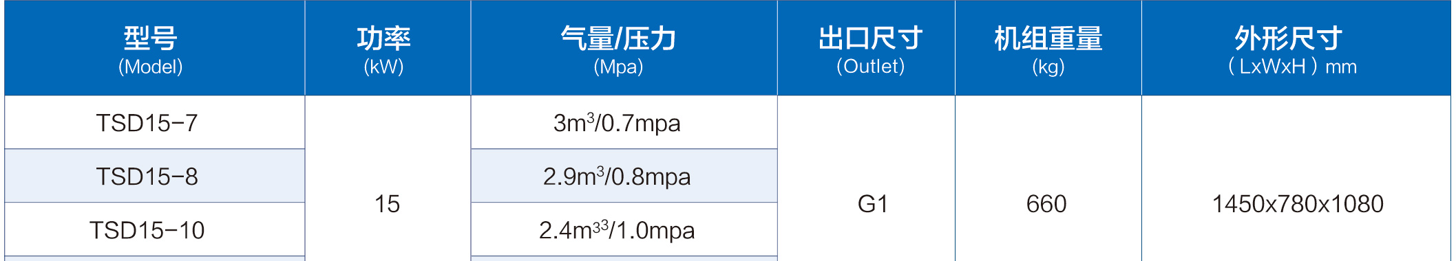 TSD系列雙級壓縮螺桿壓縮機(jī)技術(shù)參數(shù)
