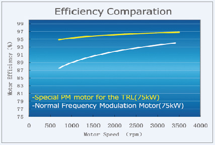 (1)、高效永磁電機(jī)(PM電機(jī)),與普通調(diào)頻主機(jī)相比,節(jié)能效果更卓越。