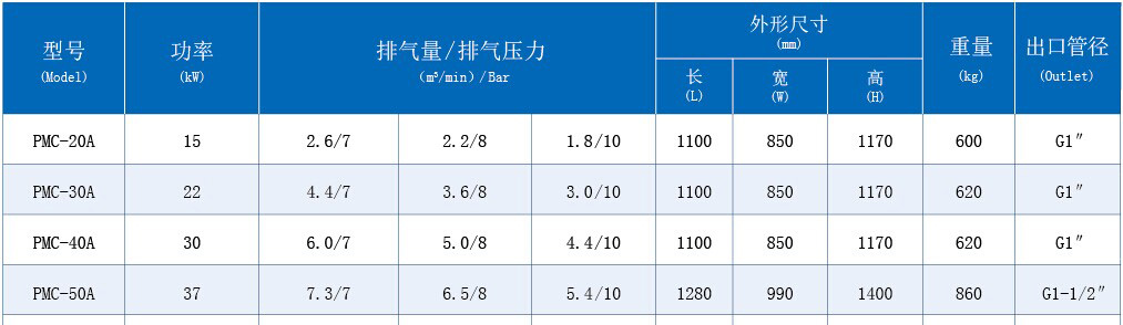 PMC系列永磁變頻螺桿空氣壓縮機(jī)技術(shù)參數(shù)