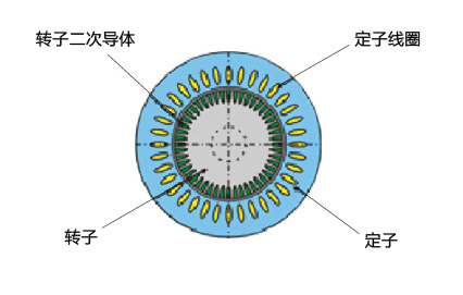 利用定子線圈交流電產(chǎn)生的旋轉(zhuǎn)磁場,使轉(zhuǎn)子(二次導(dǎo)體)產(chǎn)生感應(yīng)電流,從而帶動(dòng)轉(zhuǎn)子轉(zhuǎn)動(dòng)。