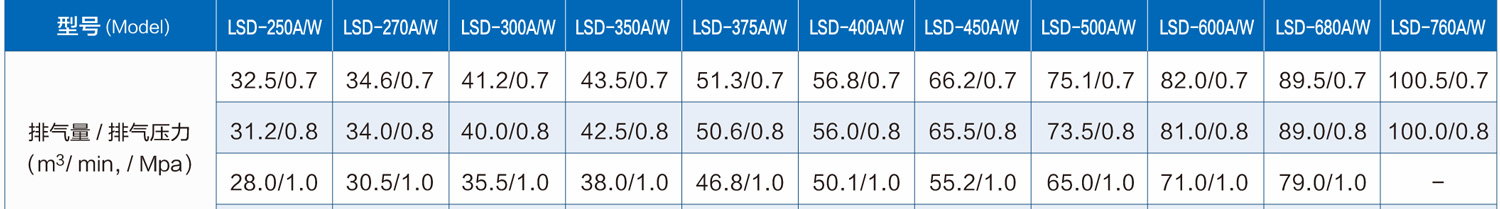 LSD系列(直聯(lián))螺桿式空氣壓縮機(jī)技術(shù)參數(shù)(22kW-160kW)